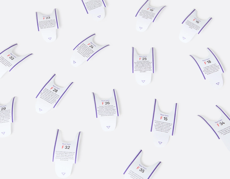 Rolo de adesivos com tema de astrologia em embalagem verde com símbolos astrológicos