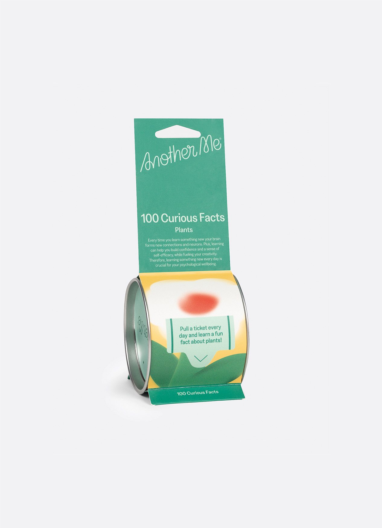 • Rolo de bilhetes com curiosidades sobre plantas em embalagem verde