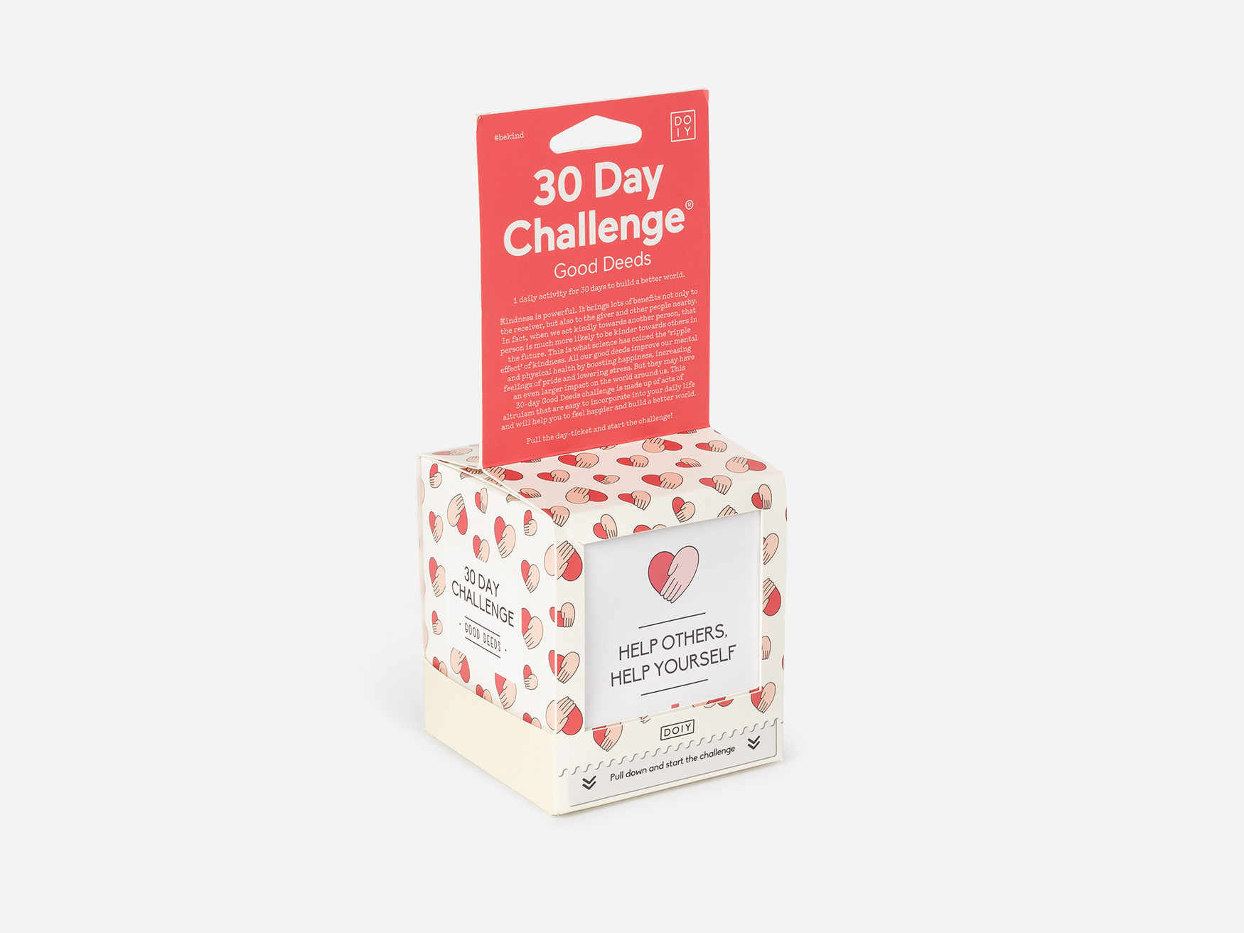 Kindness is powerful. It brings lots of benefits not only to the receiver, but also to the giver and other people nearby. In fact, when we act kindly towards another person, that person is much more likely to be kinder towards others in the future. This is what science has coined the ‘ripple effect’ of kindness. All our good deeds improve our mental and physical health by boosting happiness, increasing feelings of pride and lowering stress. But they may have an even larger impact on the world around us. This 30-day Good Deeds challenge is made up of acts of altruism that are easy to incorporate into your daily life and will help you to feel happier and build a better world. Pull the day-ticket and start the challenge!