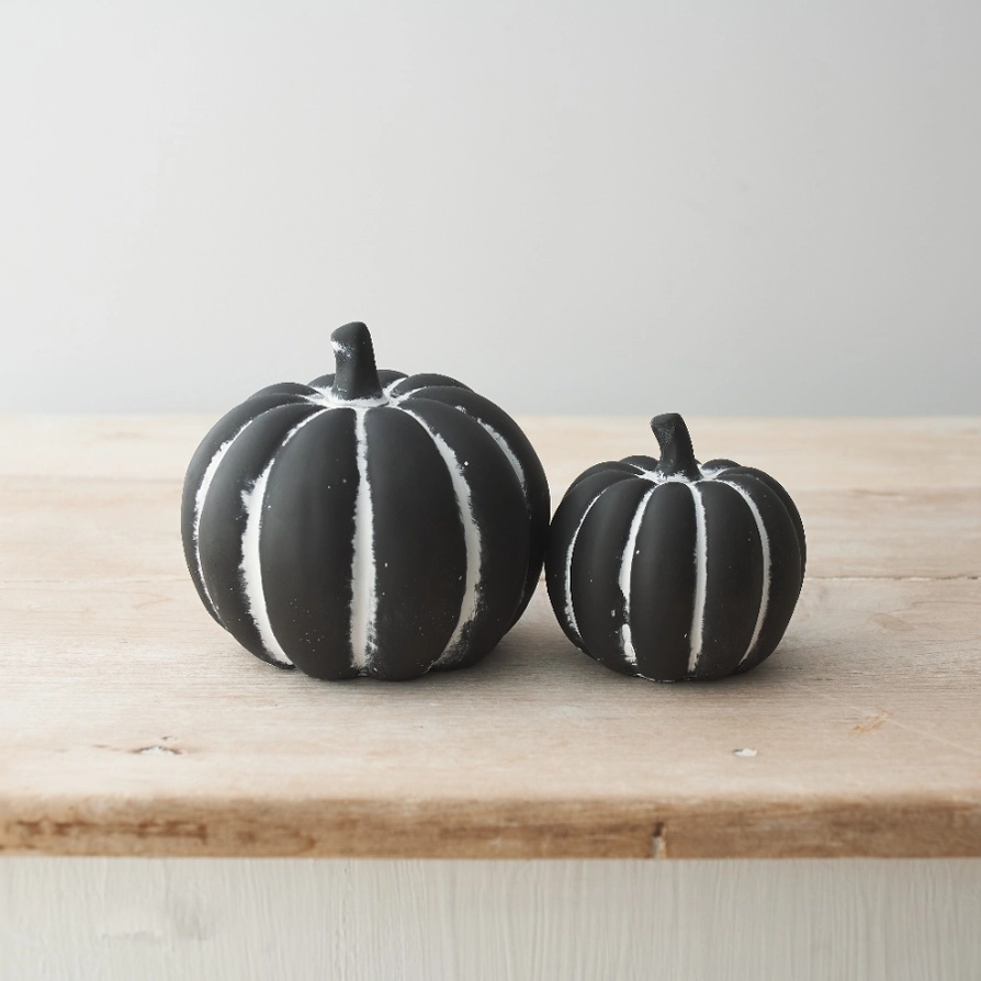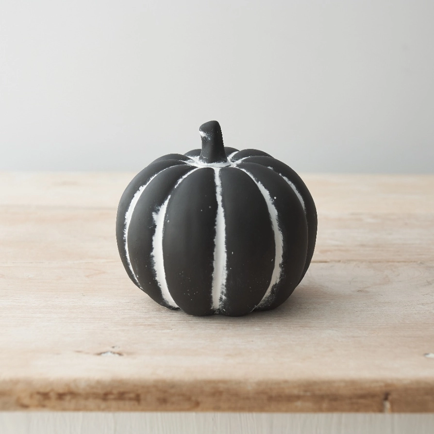 Uma abóbora de cimento rústico a preto e branco. Um ornamento maravilhosamente detalhado e único para a casa esta estação.