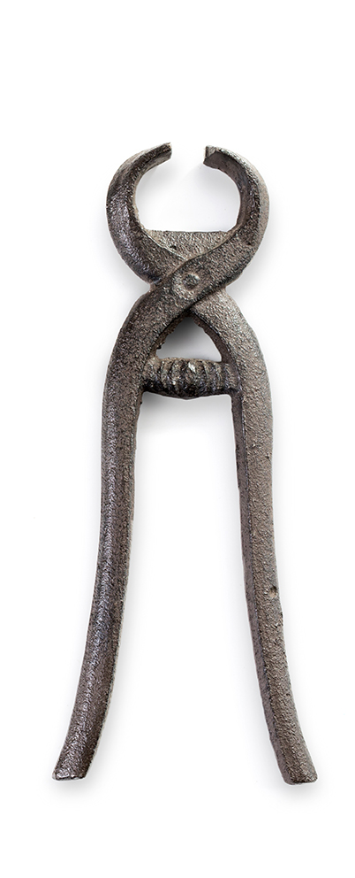 Alicate antigo de metal com alças longas e mandíbula semicircular