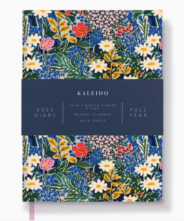 • Agenda 2025 capa florada colorida com faixa azul e texto branco