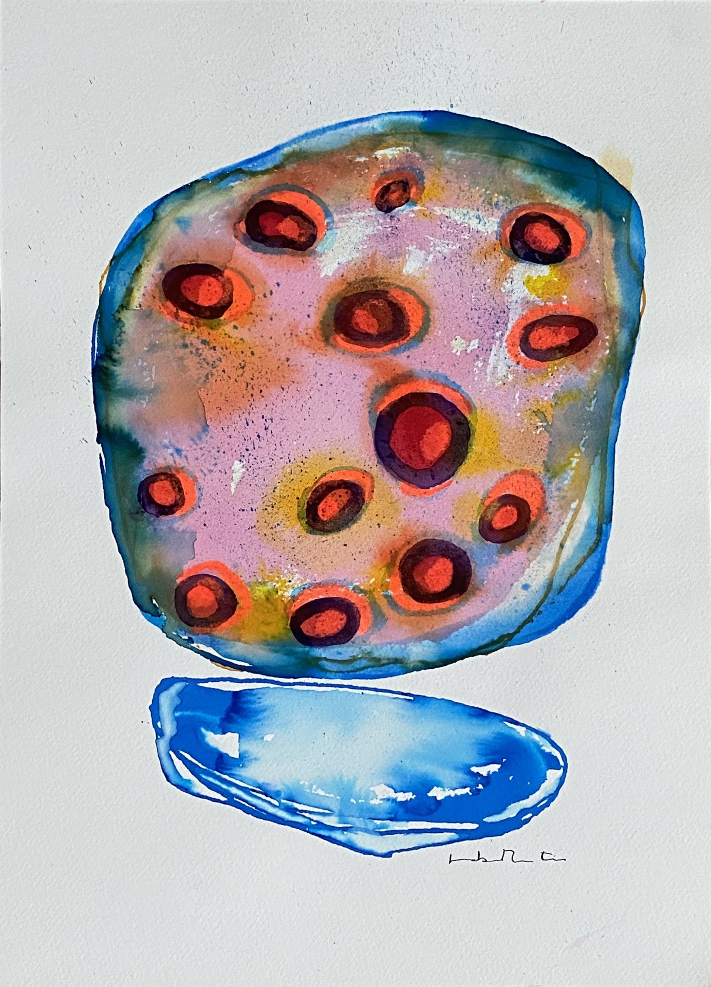 Em criança, queria fazer desenhos animados. E é isso que estes desenhos traduzem: manchas breves de aguarela em que o processo é protagonista. Começaram como uma meditação, com a tinta a ser deixada correr. E, após mais de 30 anos com óleo e telas, foi nesta recente brincadeira que encontrou o terreno espontâneo que esta exposição privilegia.