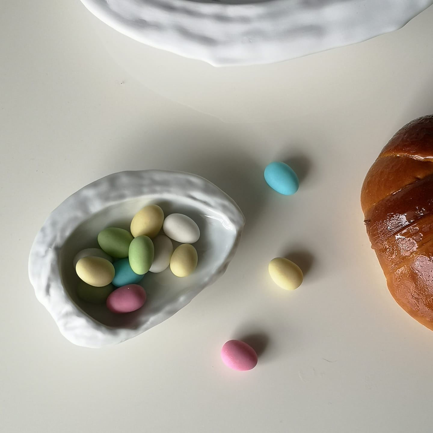“A Bruxa e os Frutos” é uma representação própria de uma amêndoa, onde se potencializa e valoriza mutuamente a modelação digital e manual. Esta peça é fabricada em porcelana, vidrada no interior a transparente. As peças são feitas à mão, podendo apresentar pequenas variações. A peça permite a lavagem à máquina e o uso do micro-ondas.
