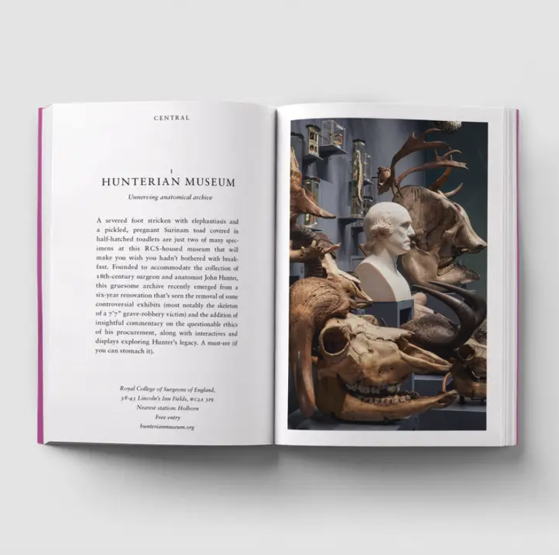 'An Opinionated Guide to London Museums. Text by Emmy Watts. 176pp, paperback, 112 x 162mm. Contains 50+ places, an introduction, and ‘best for section’. Museums aren't just about old mummies and Old Masters. London has a treasure trove of deeply unusual exhibits from medical memorabilia and fantasy taxidermy to hidden postal tunnels and preserved Modernist homes. Oh, and it happens to have a world-class collection of mummies and Masters too. Marvellous.
