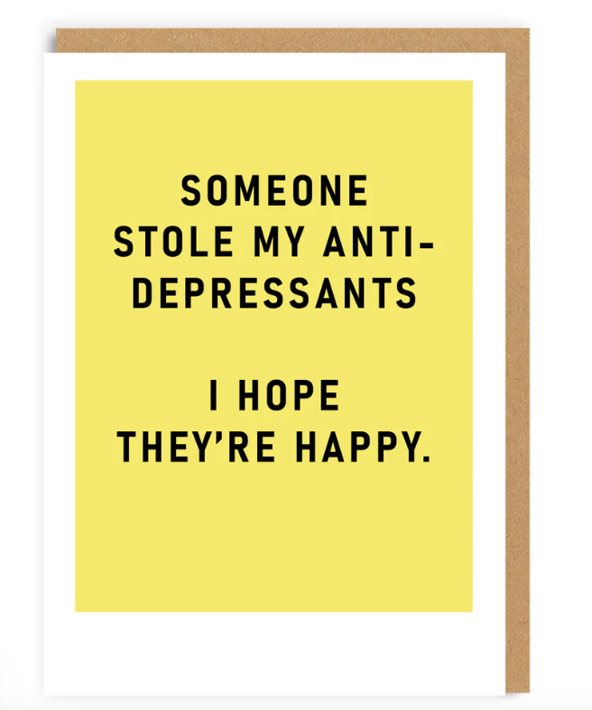Send bright, sunny thoughts with this funny Anti Depression Greeting Card. Made in the UK and finished with Black Foil, this card is sure to bring a warm, cheerful smile! Give a touching reminder that even the darkest days can be filled with hope and light. Let your loved ones know that you care with a card from the heart.