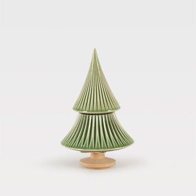 “A Árvore e o seu Zingamocho” é um jogo composto por peças em grés fino, banhadas manualmente em vidrados translúcidos corados, e peças de madeira de tília, torneadas e carimbadas. As peças de madeira assumem uma dupla função – tronco de uma árvore ou tampa de uma caixa. Permite a construção de um pinheiro em dois tamanhos diferentes, um dos símbolos mais populares da época natalícia. O pinheiro transforma-se num conjunto de caixas, onde se poderão guardar pequenos objectos ou alimentos.
