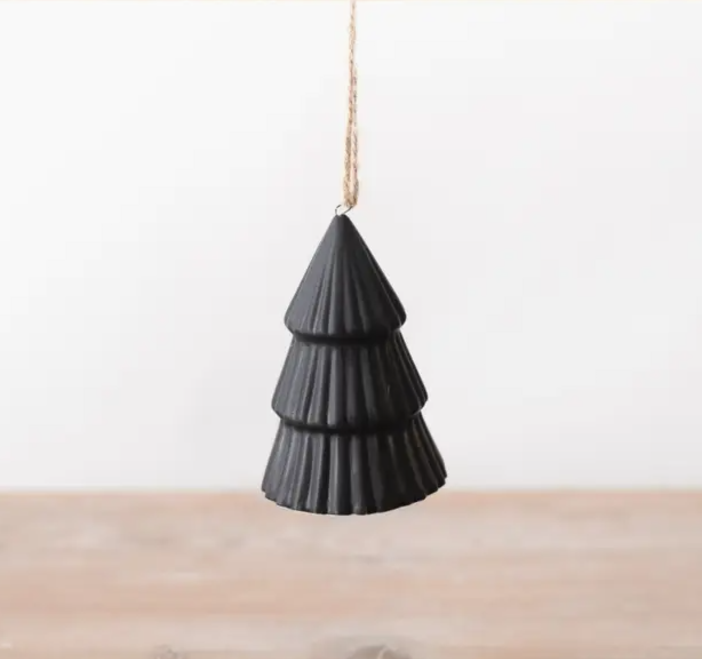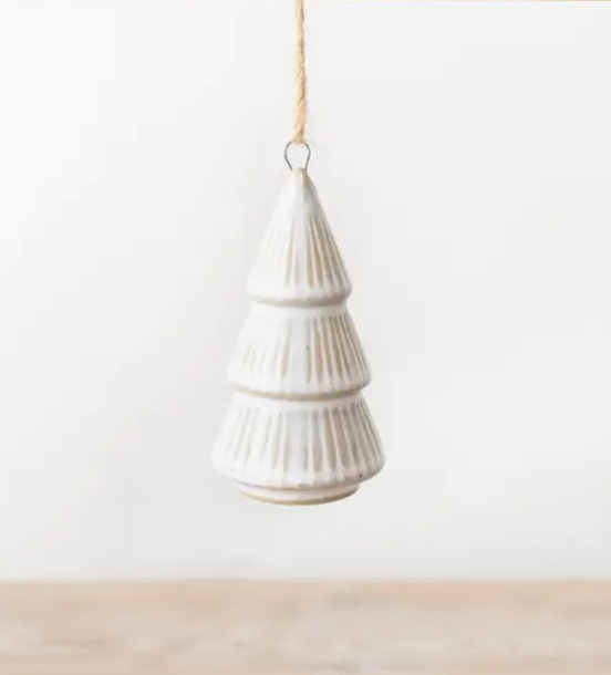 • Enfeite pendente em forma de árvore de Natal branca com textura canelada