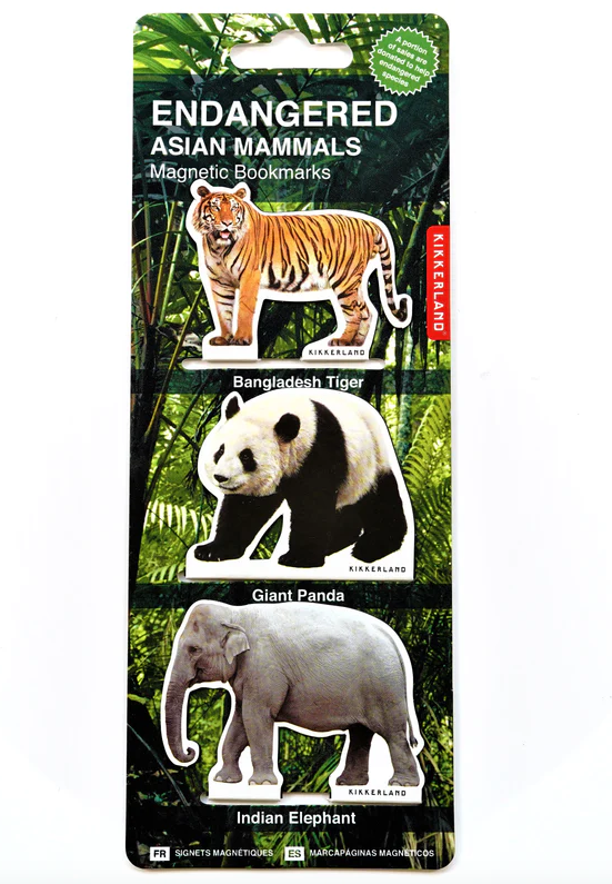 Set of 3 folding magnetic bookmarks featuring endangered mammals
