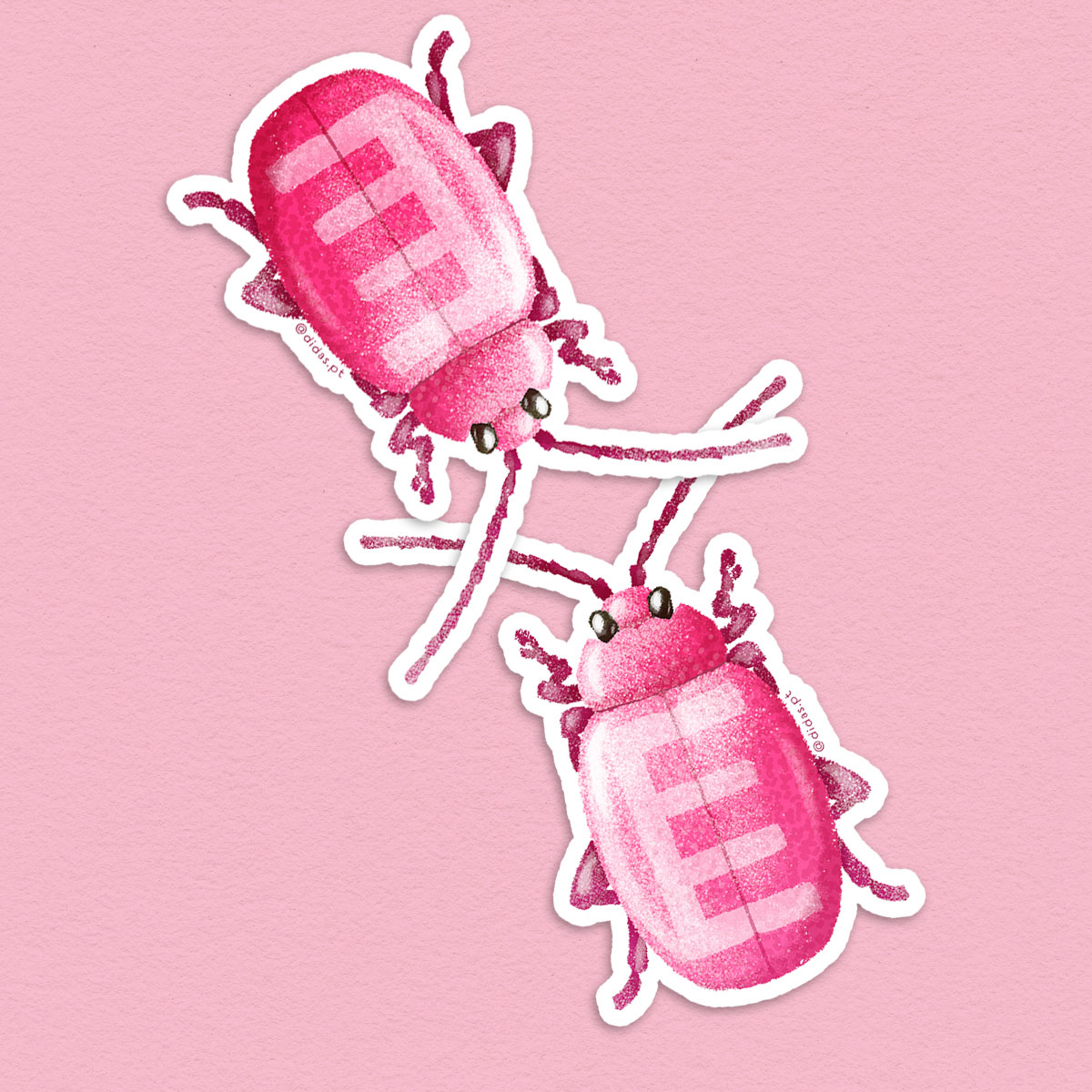 • Dois autocolantes de besouro rosa sobre fundo rosa