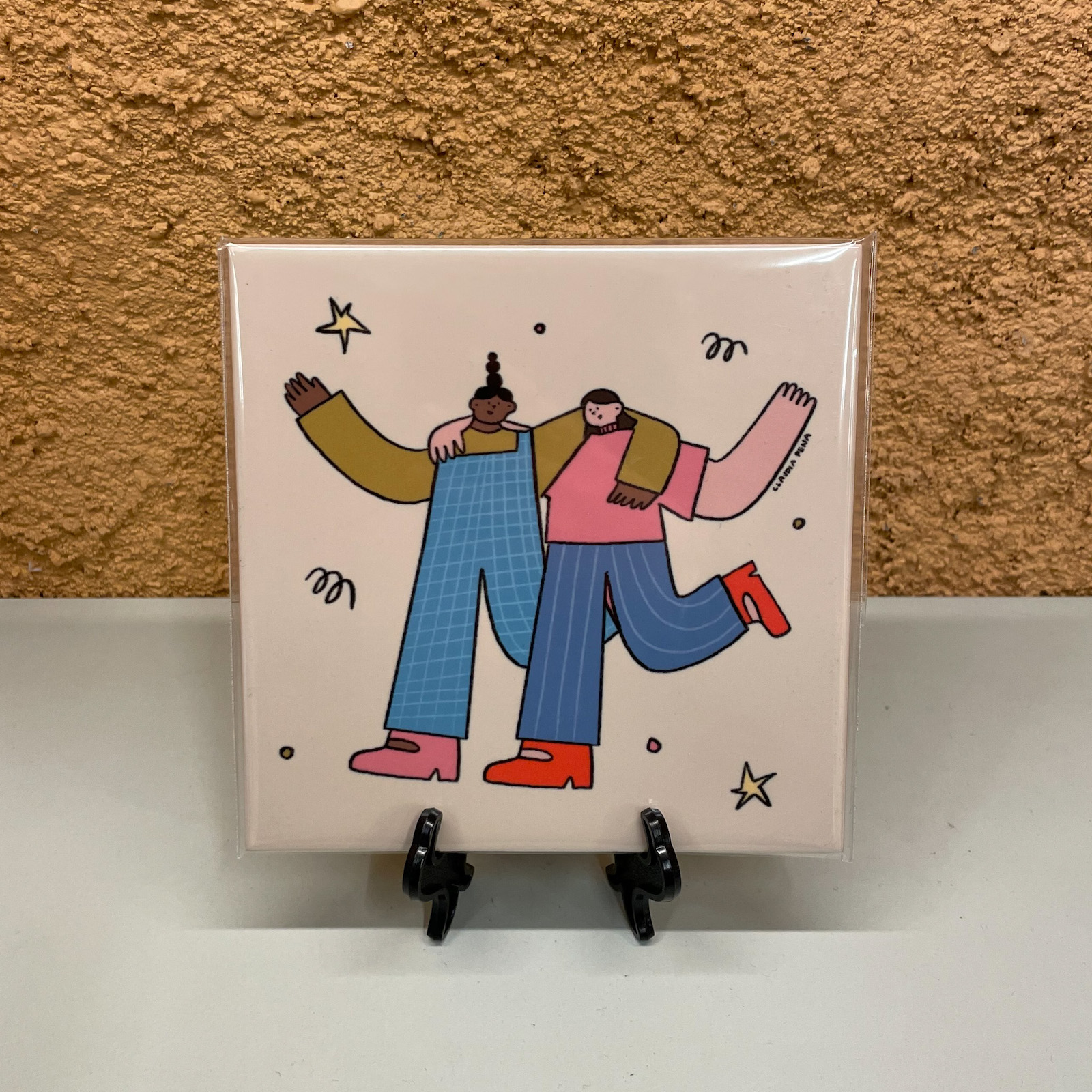 Um azulejo que celebra a amizade feminima, que celebra a diversidade.