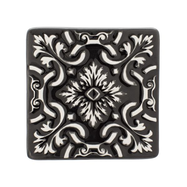 • Azulejo quadrado em cerâmica preto e branco com padrão decorativo clássico