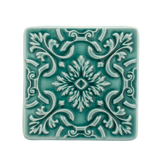 • Azulejo quadrado verde com padrão ornamental em relevo