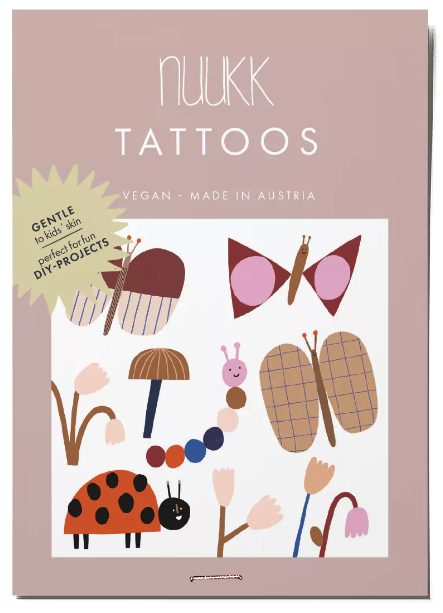 • Pacote rosa de tatuagens temporárias para crianças com desenhos de insetos e flores