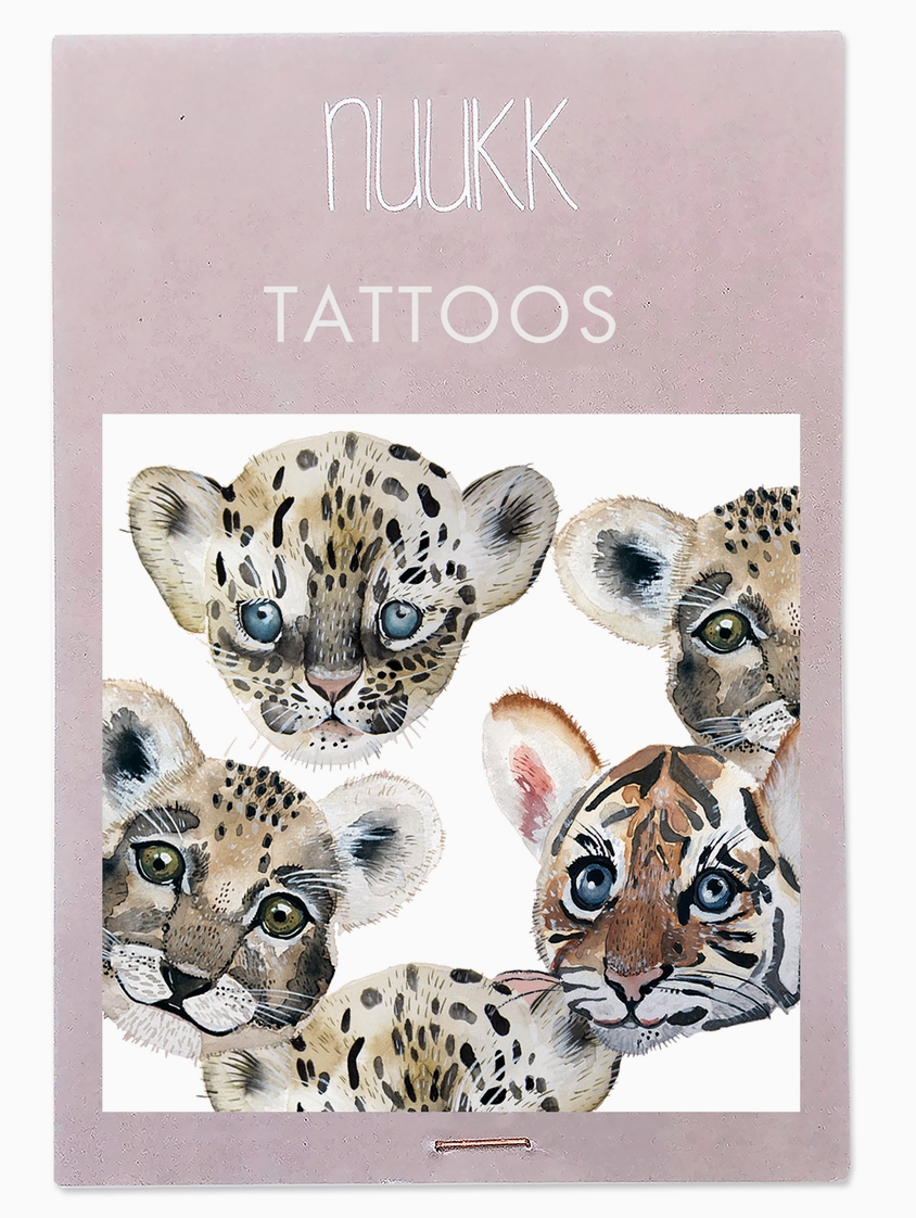 • Tatuagens temporárias com filhotes de felinos em embalagem rosa