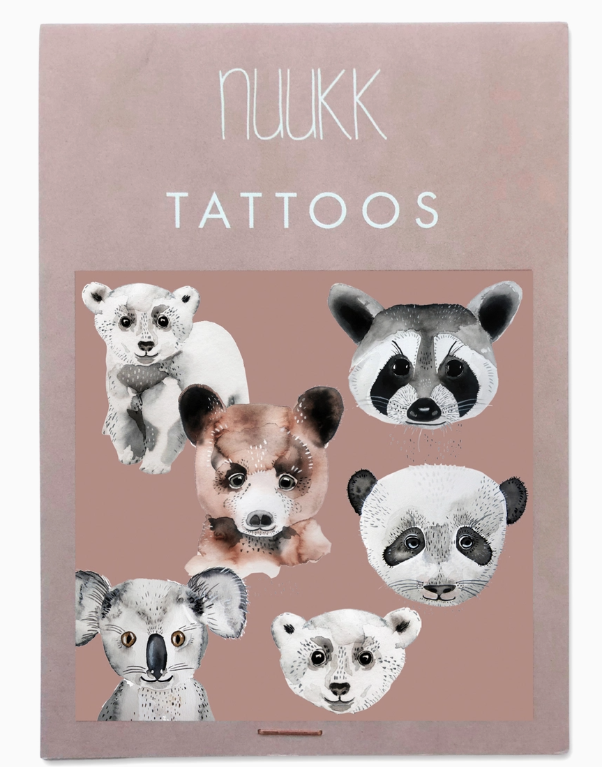 • Embalagem de tatuagens temporárias com desenhos de animais em aquarela