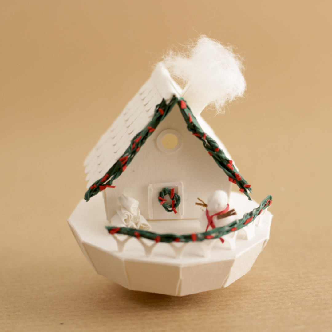 • Miniatura de casa branca decorativa com boneco de neve e algodão a simular fumo