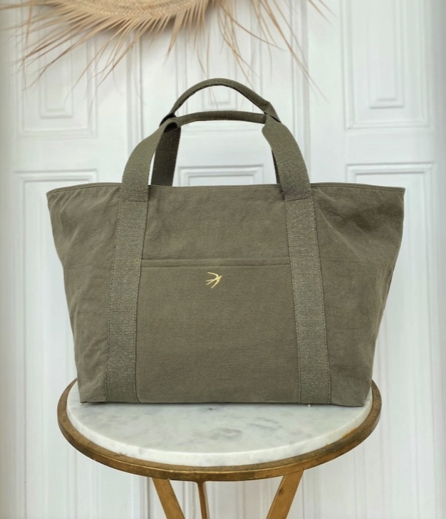 lona e alças em lona grossa e resistente fecho zip grande com deslizador duplo bolsos para encontrar tudo facilmente: 2 bolsos internos e 1 bolso exterior laço traseiro para colocar em uma mala de cabine duas alças com glitter com reforço