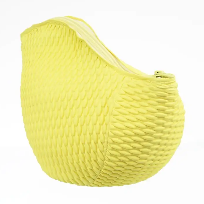 Mala amarela texturizada com formato arredondado e fecho no topo