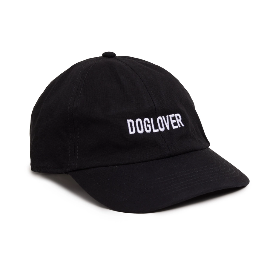 • Boné preto com a palavra DOGLOVER bordada a branco