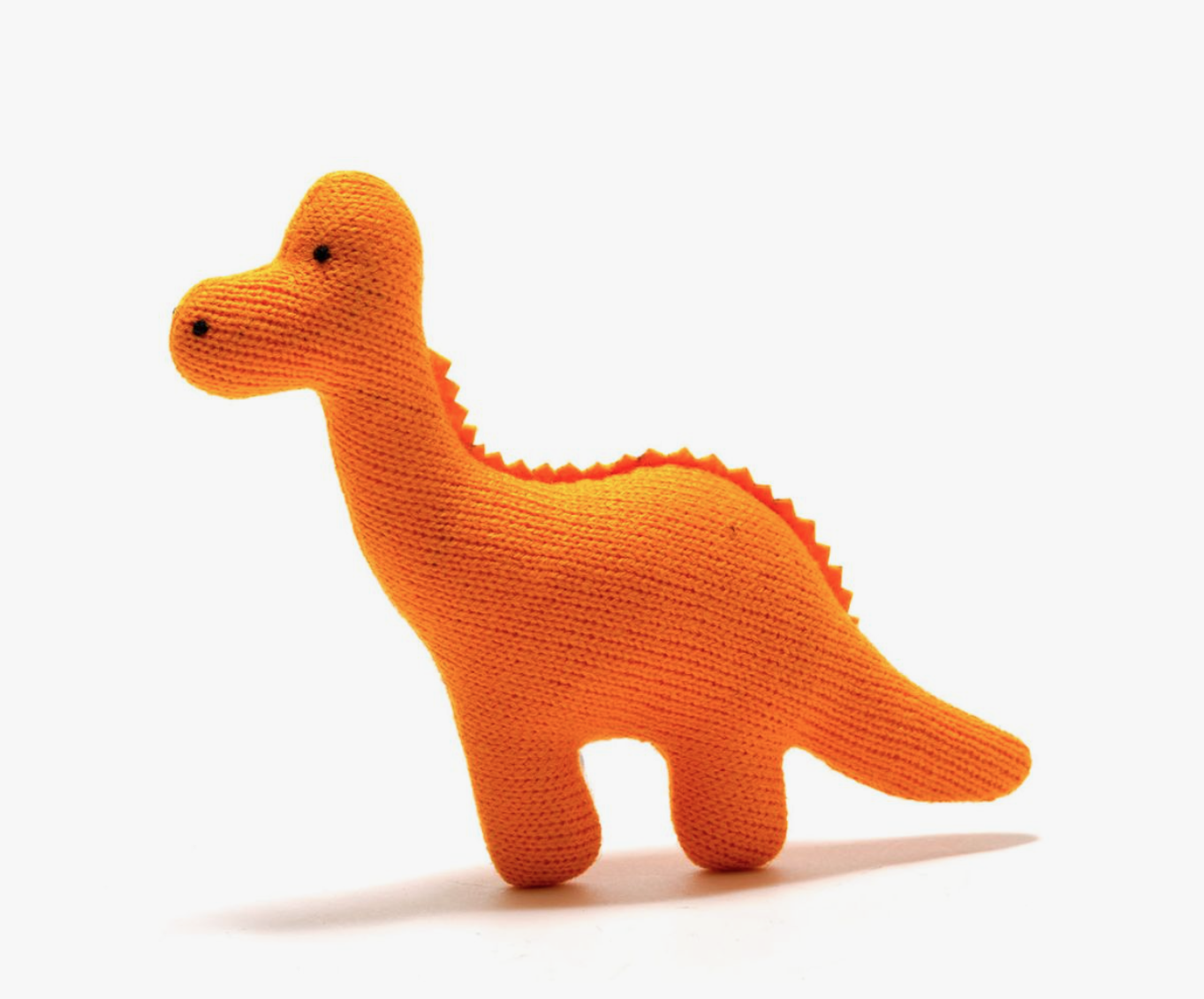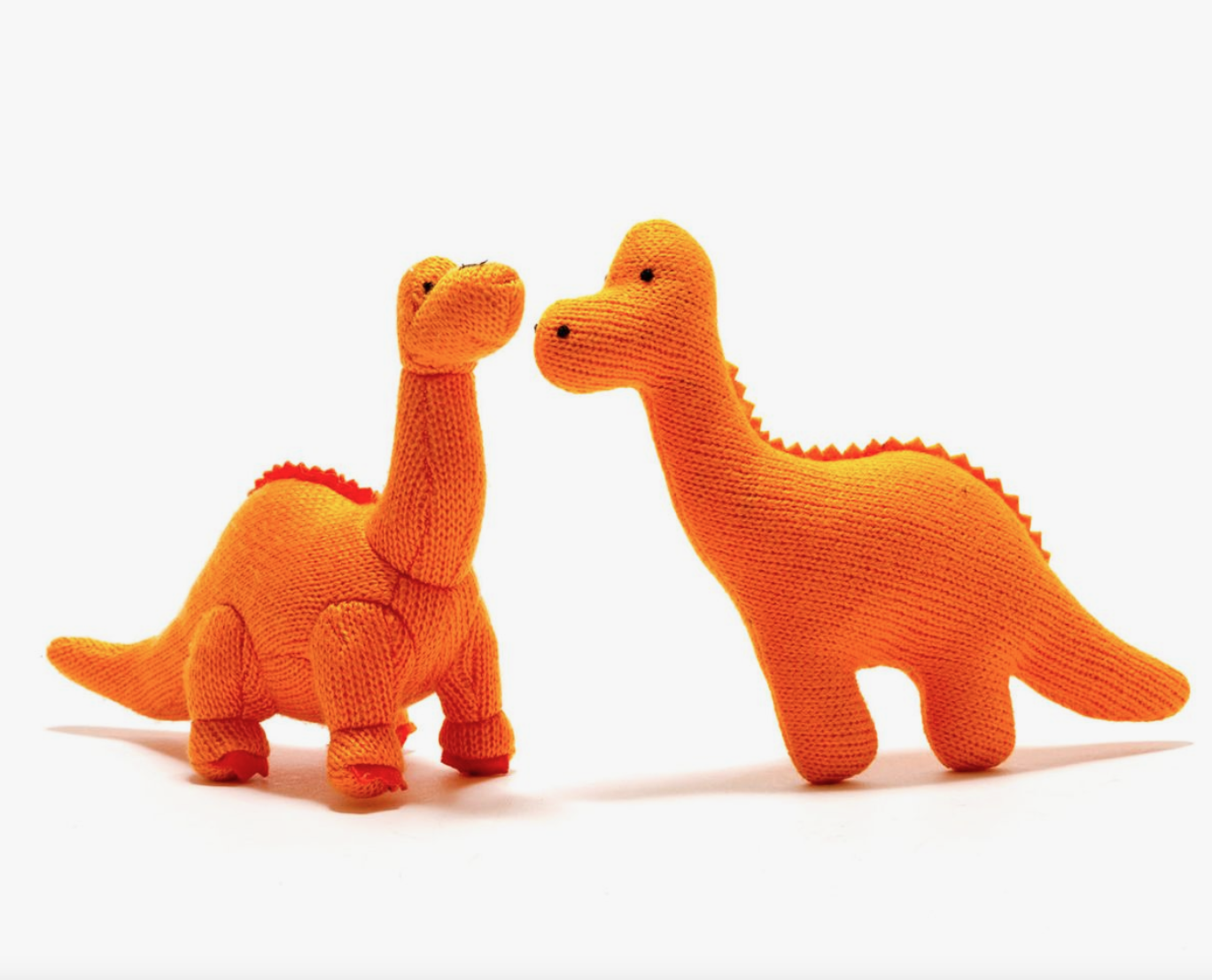 • Brinquedo dinossauro de tecido tricotado laranja com olhos pretos