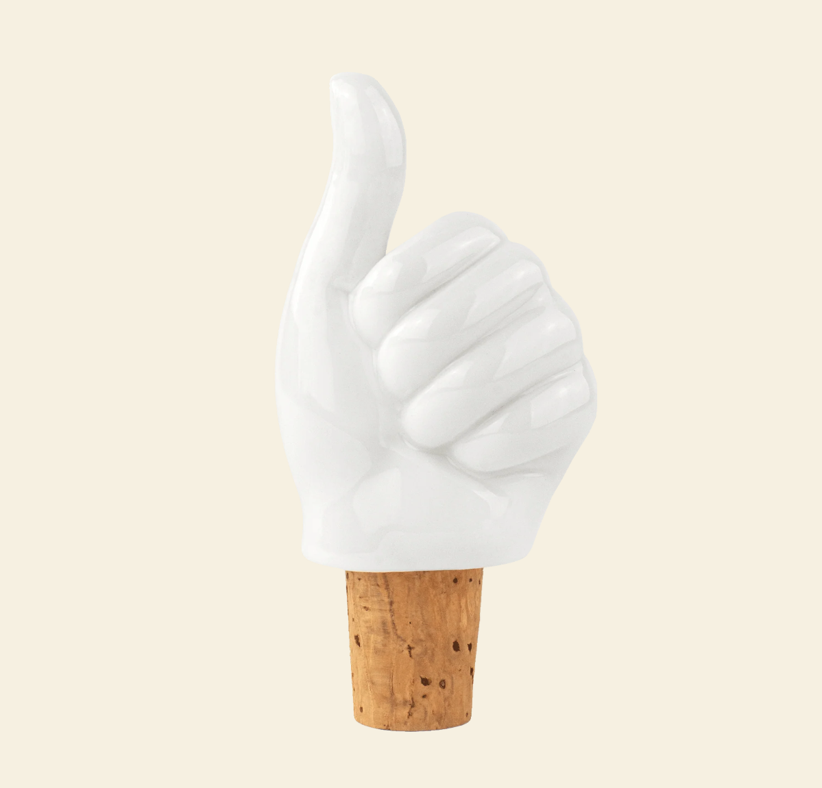 • Rolha de garrafa com mão branca em cerâmica e base em cortiça