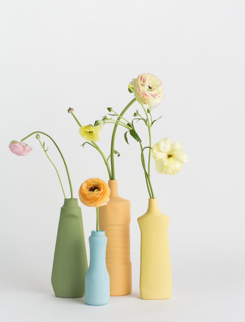 Os vasos para garrafas são inspirados numa coleção de lixo plástico do rio Maas em Rotterdam, na Holanda. Depois de ler sobre a "sopa de plástico", começou a olhar mais atentamente para o rio que corria na sua cidade natal e encontrou resíduos de plástico que se acumulavam lá desde os anos 1960. Ao criar cópias de vasos de porcelana coloridos duráveis ​​do material que encontrava, tentou desta forma espalhar a consciência sobre esse problema crescente. Os vasos de porcelana coloridos estão disponíveis em uma variedade de formas e cores, o que faz um lindo arco-íris.