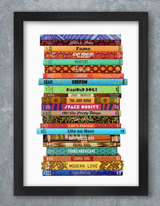 Bowie By The Book features some of the great songs written by the Thin White Duke, created as a set of book spines.