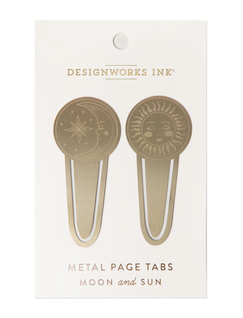 The DesignWorks Ink Celestial Metal Page Tabs are an elegant yet fun way to save your page while you read, journal, study, or plan. This set of two metal page markers features a sun and moon in polished metal for a sturdy, shiny placeholder.