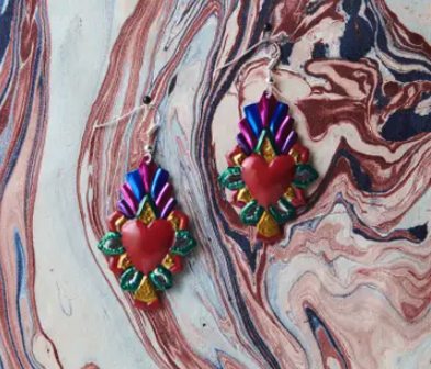 Brincos de mini coração mexicano muito bonitos. Modelo Rombo.