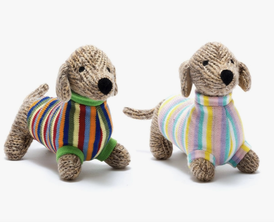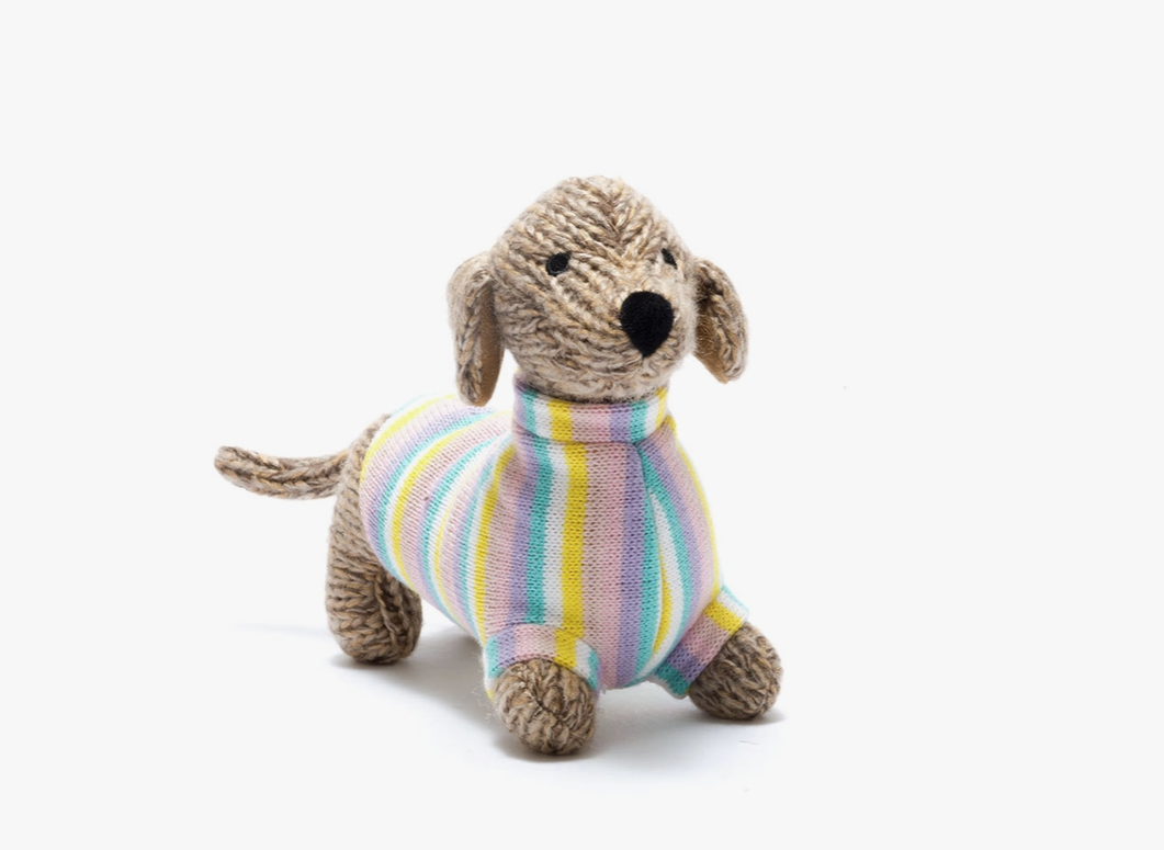 CÃO SALSICHA de malha com jumper pastel BEST YEARS
