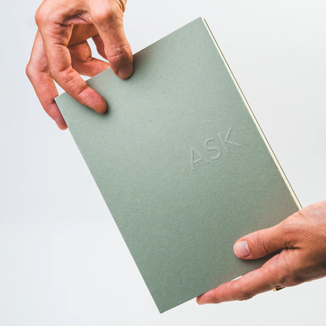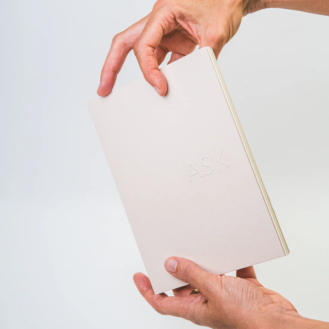 The ASK Journal is carefully hand finished. Slight variations in detail make each journal unique.