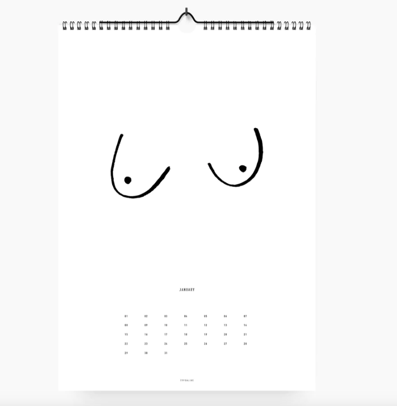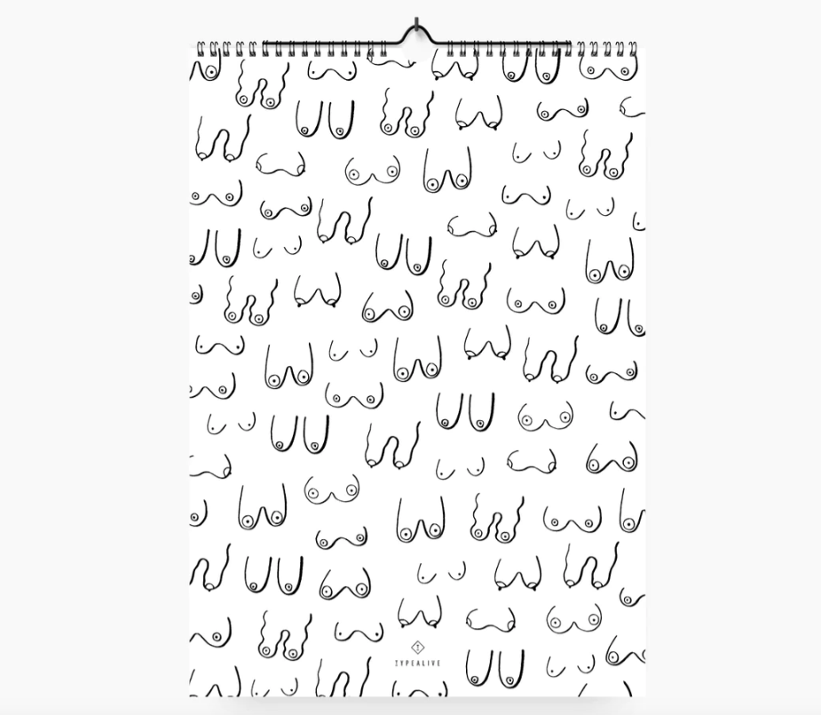 • Calendário de parede com desenhos simples de vários tipos de seios femininos
