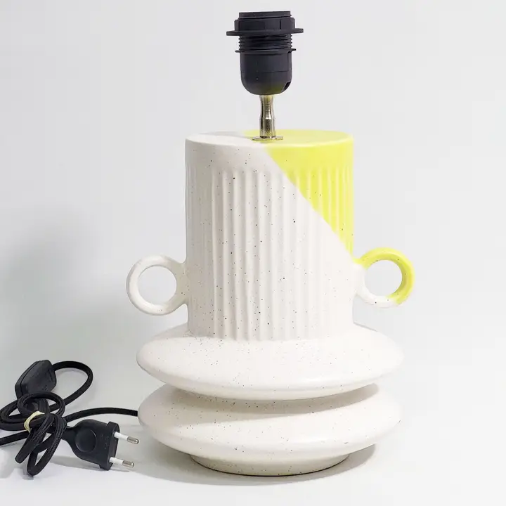 • Candeeiro de mesa cerâmico branco e amarelo com cabo preto