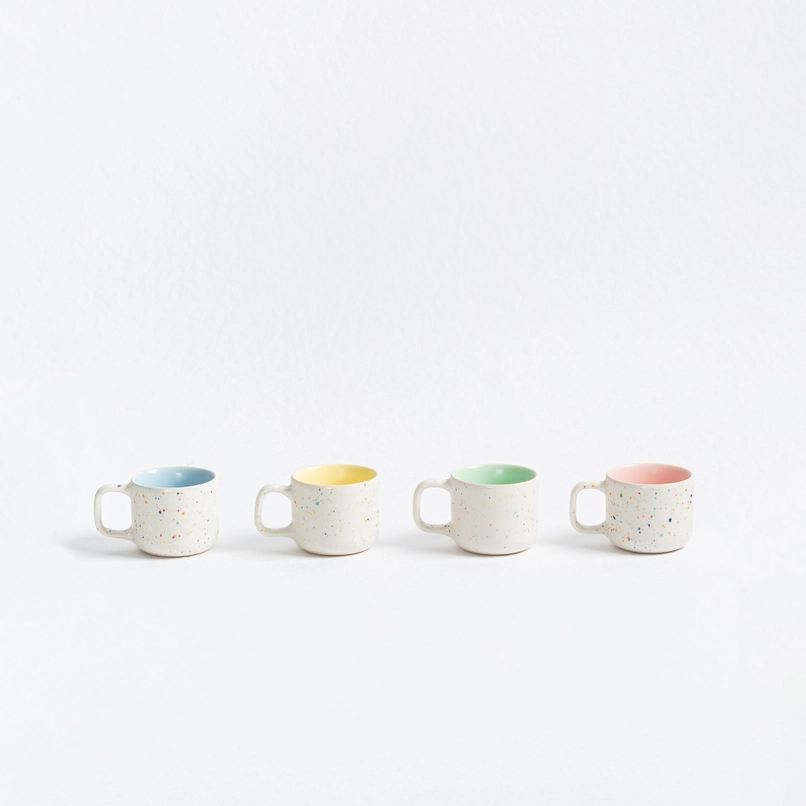 A caneca de espresso Breeze Party 60ml combina tons suaves e mate—azul, rosa, amarelo e verde—no interior, com o exterior branco característico da Party. Perfeitamente dimensionada para o seu espresso diário, traz um toque de cor e charme a cada gole.