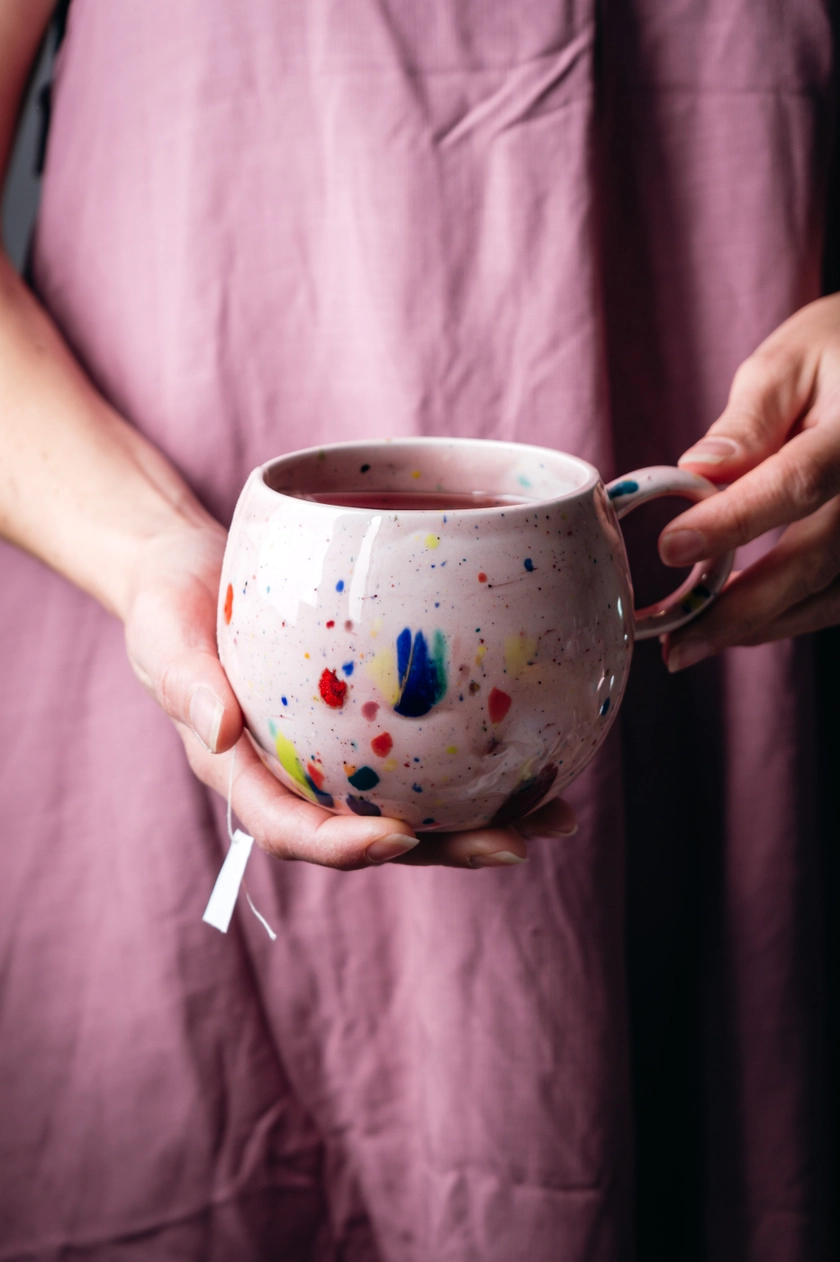 Dê a si mesmo um momento tranquilo e relaxante com nossa linda “caneca party pink ball”! Esta elegante peça de cerâmica, com um acabamento esmaltado brilhante e uma paleta colorida, é perfeita para sempre.