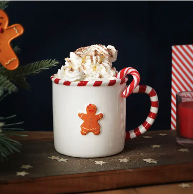 • Caneca natalícia branca com biscoito de gengibre e chantilly
