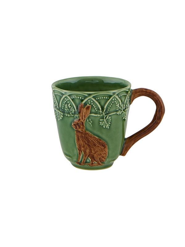 • Caneca verde com coelho castanho em relevo e asa castanha