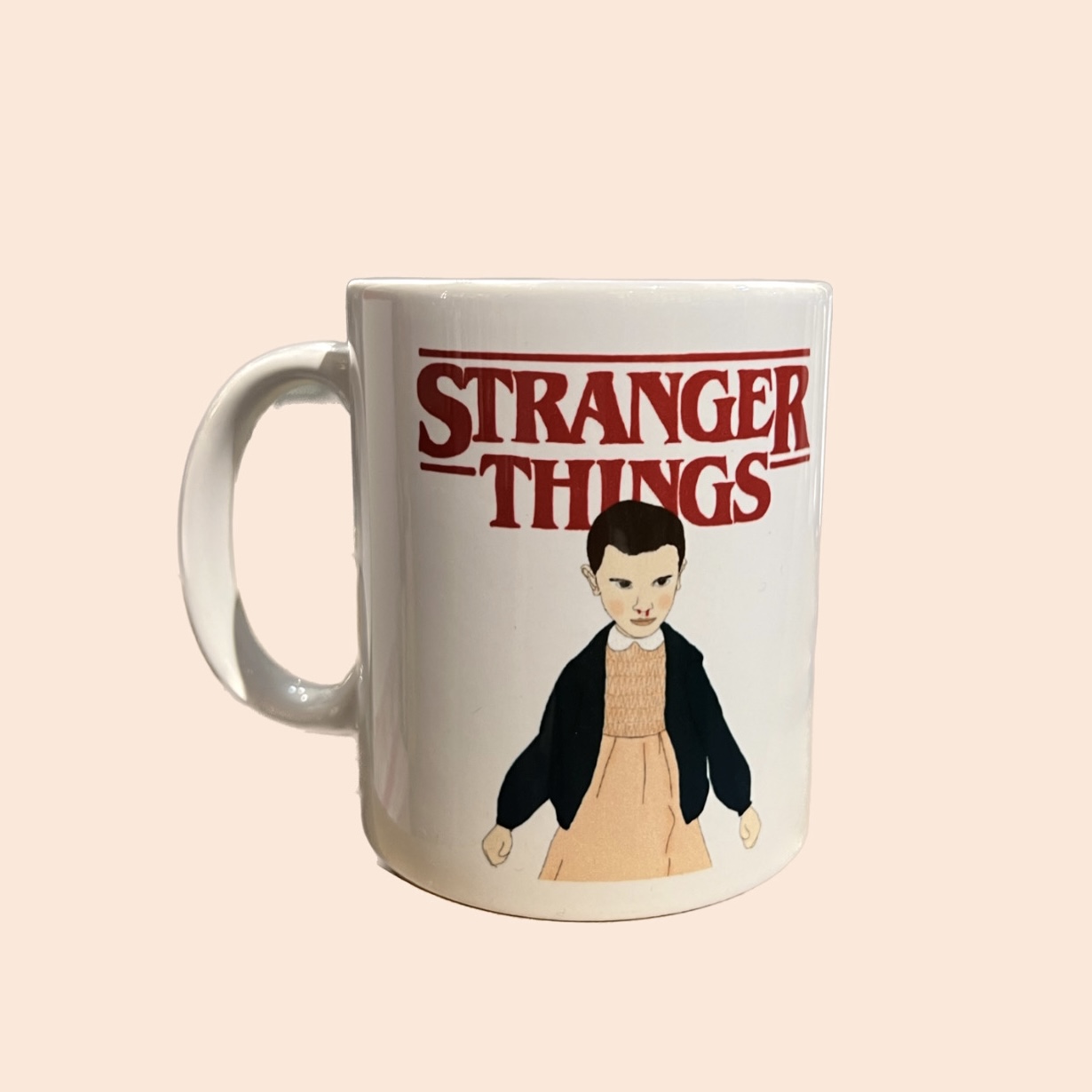Caneca branca com ilustração e texto Stranger Things