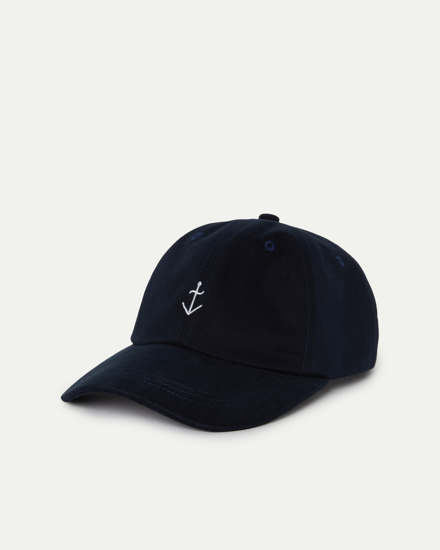 • Boné azul escuro com bordado de âncora branca.