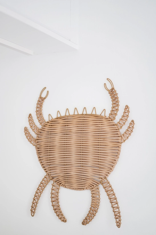 Joab o caranguejo feito de fibra natural (rattan), para ser tocado em duo ou tríptico, dá ao seu interior uma aparência inédita, como um armário de curiosidades!