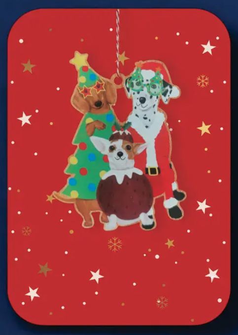 CARTÃO ORNAMENTO DE MADEIRA "CÃES DE NATAL" ALLJOY DESIGN