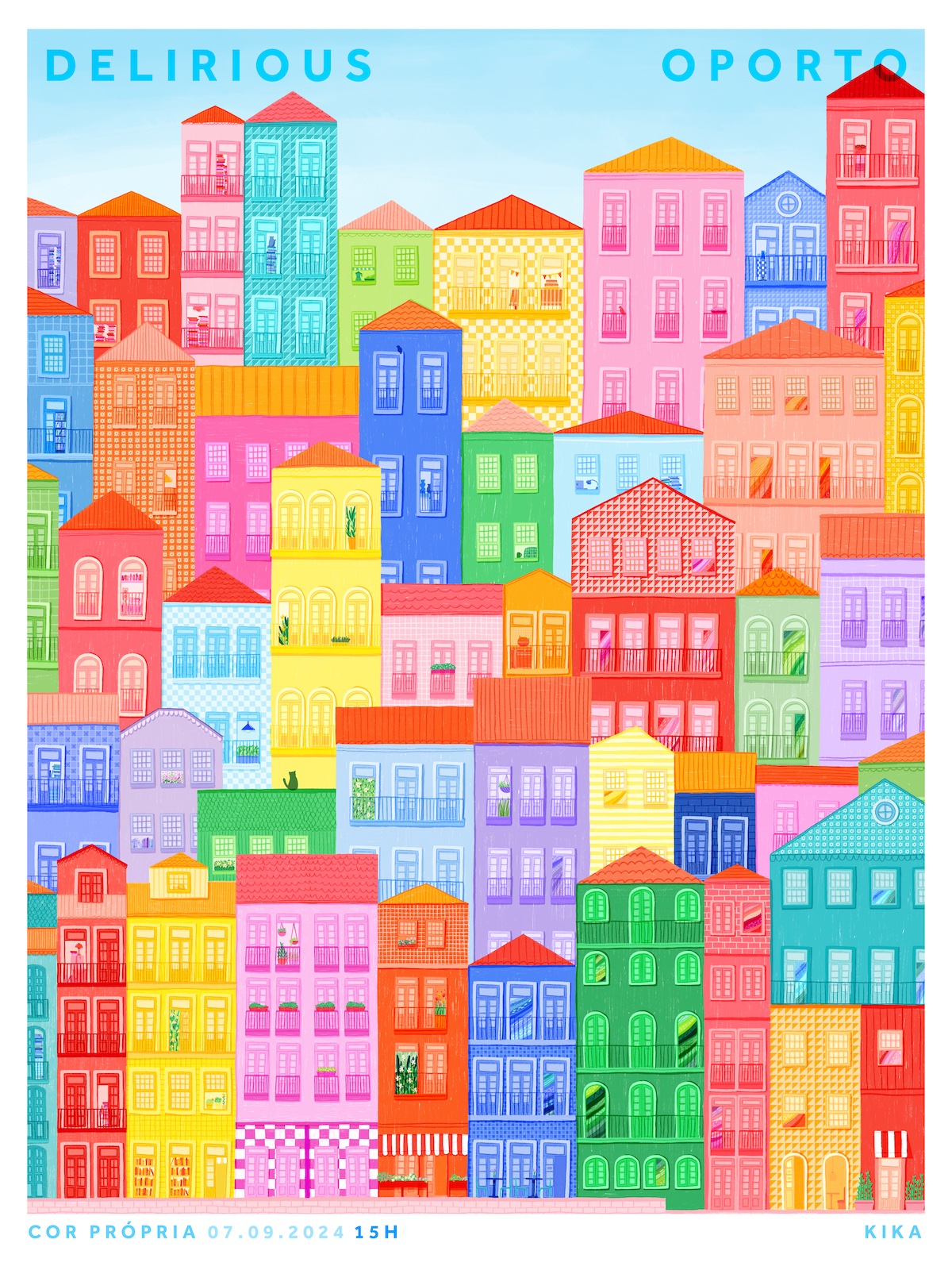Delirious Oporto é um Porto cheio de cor que às vezes as nuvens não deixam ver muito bem. É sobre os dias de sol, em que a luz da cidade parece emprestada, e que têm de ser aproveitados porque não costumam durar muito. As cores vibrantes desta cidade entram pelas casas adentro e enchem-nas de vida e de um bocadinho de delírio. Este delírio é necessário para guardar no bolso e tornar a usar nos dias cinzentos em que fica difícil ver o mundo a cores. Usar à discrição.