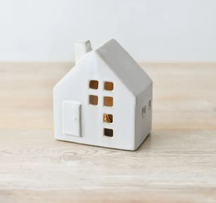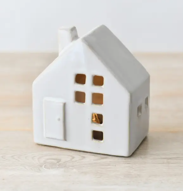 CASA BRANCA EM CERÂMICA COM ESMALTE REATIVO E LUZ LED GAINSBOROUGH GIFTWARE
