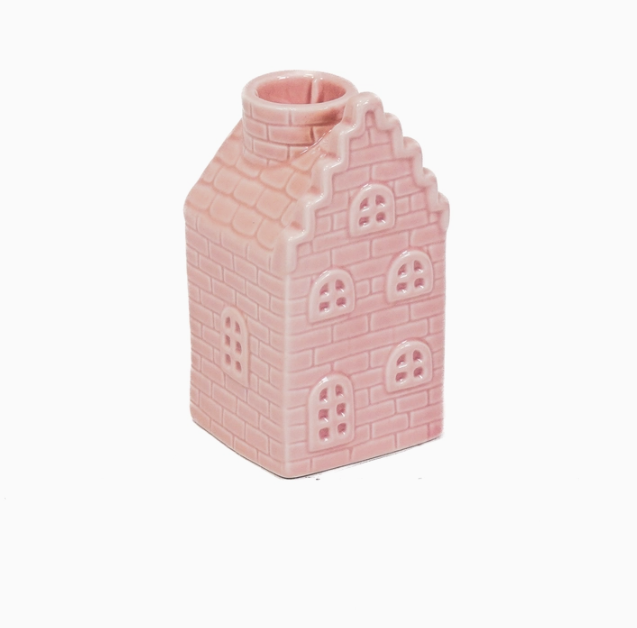 • Figura decorativa de casa cor-de-rosa em cerâmica com textura de tijolos
