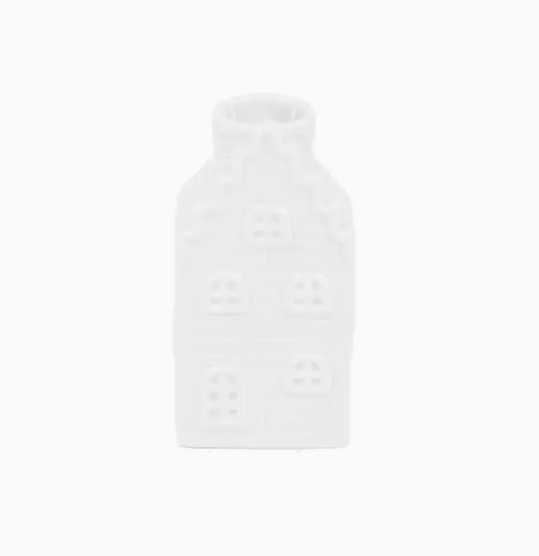 • Vaso decorativo branco em forma de casa em cerâmica