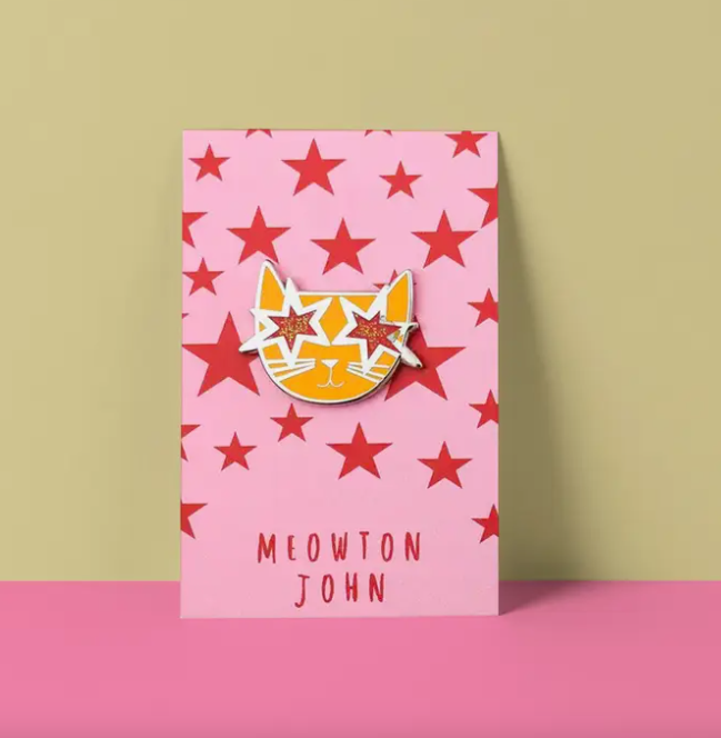 Illustrator Nia Gould brings together her love of cats and art in a unique accessories range. Introducing the purr-fect accessory for all feline and art enthusiasts - The ‘Cat Musician’ enamel pin range is a feline reimagining of some of the greatest artists of all time. Adorn your favourite jacket, tote bag, or backpack with this adorable and eye-catching pin that combines two passions in one. Crafted with meticulous attention to detail, this miniature work of art features a charming cat with an artistic twist on the original works of art or artist. The ‘Meowton John’ pin is a feline interpretation of music legend, Elton John now reimagined as ‘Meowton.’ Whether you're treating yourself or searching for the purr-fect gift for a fellow cat lover or artist, this art-themed cat pin badge is guaranteed to bring a smile to anyone's face. It's a small but meaningful way to express your love for the feline world and the magical realm of art.