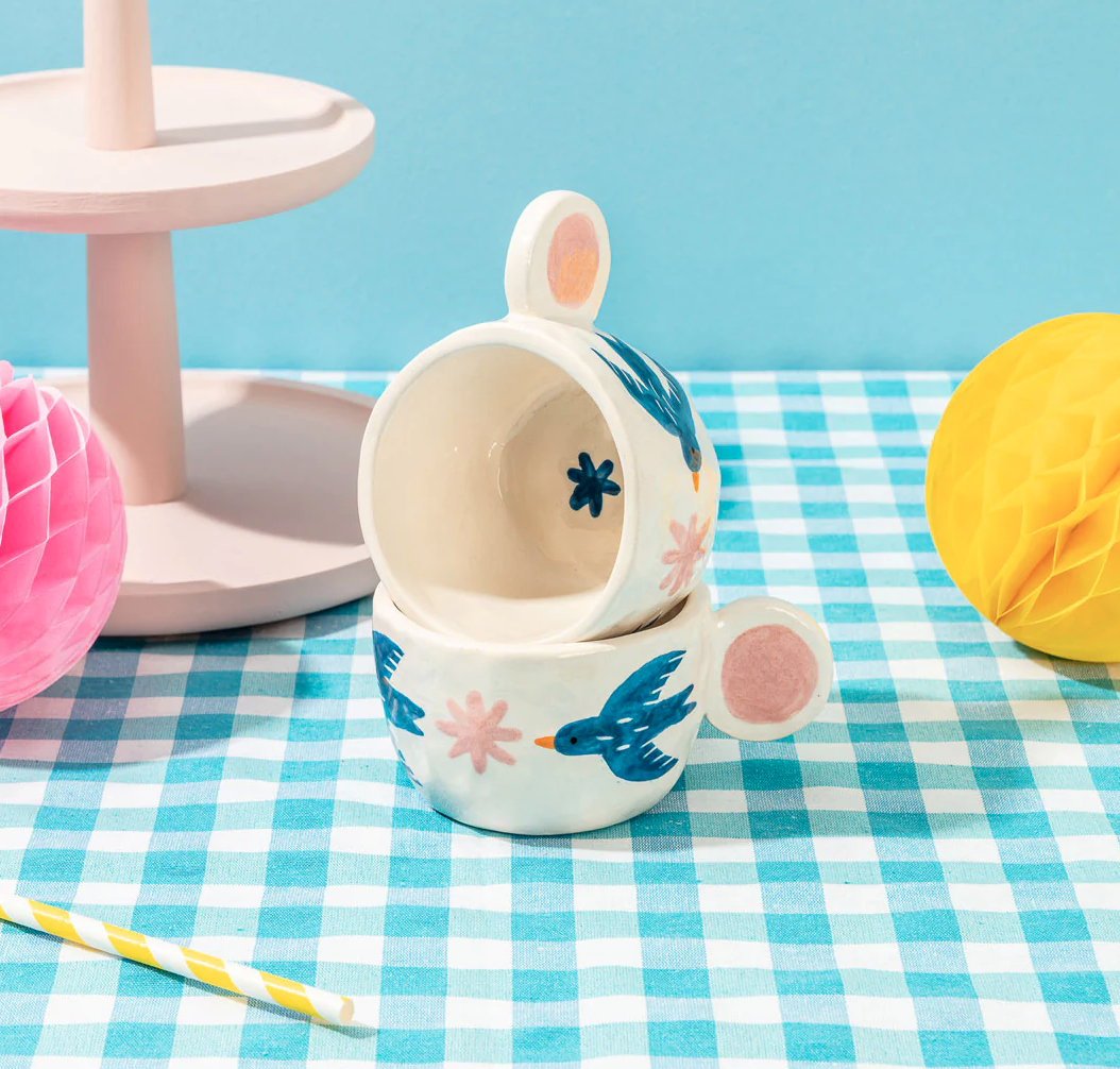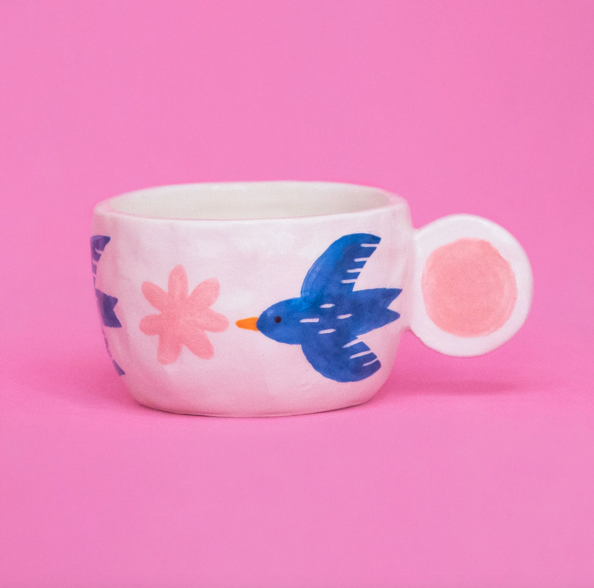 Não há duas xícaras iguais! O padrão é diferente em cada xícara, mantendo as mesmas cores e formatos semelhantes.