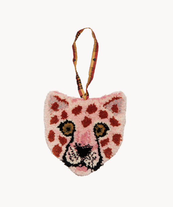 • Ornamento decorativo rosto de leopardo felpudo com fita para pendurar