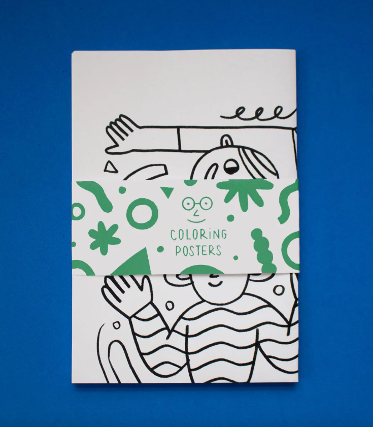 • Pacote de posters para colorir com ilustrações em preto e branco e faixa com texto COLORING POSTERS